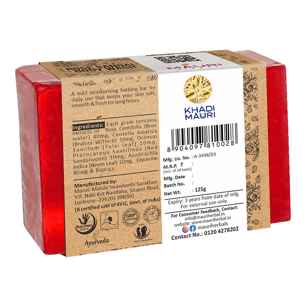 Wrap your skin in the delicate care of Rose Water with the Mauri Herbal Rose Body Wash, a mild Ayurvedic bathing bar designed to hydrate, soothe, and refresh. Infused with natural extracts like Brahmi, Tulsi, Neem, and Red Sandalwood, this 125g bar offers a calming cleanse that leaves your skin soft, smooth, and lightly fragrant.